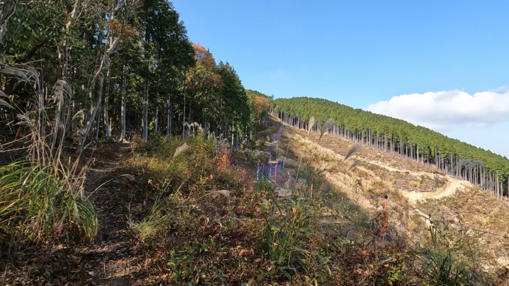 隣の山で大きく伐採された斜面。何か造成するのかな?