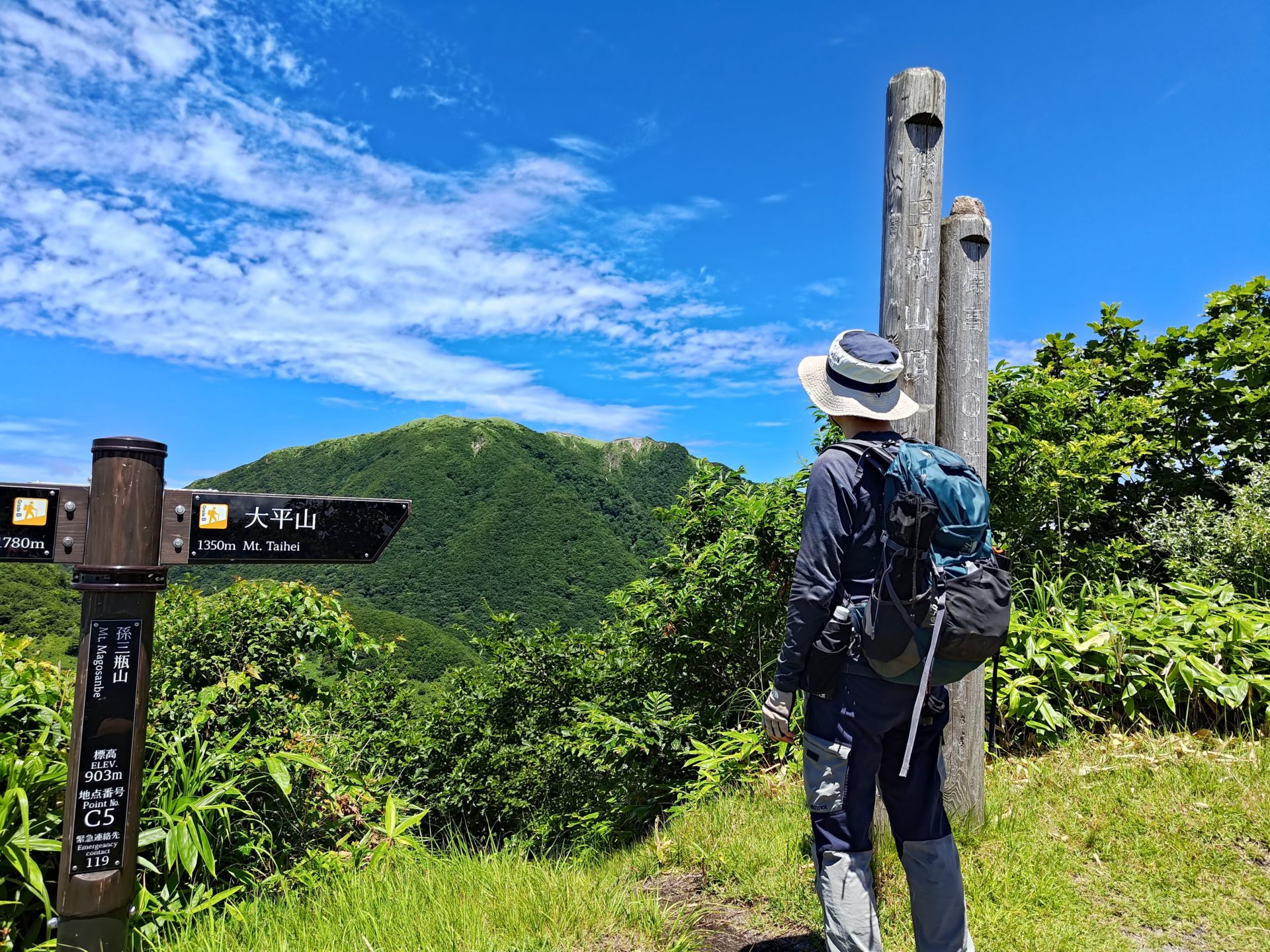 分岐から男三瓶山へ 案内板にはグレードCと記載されています。